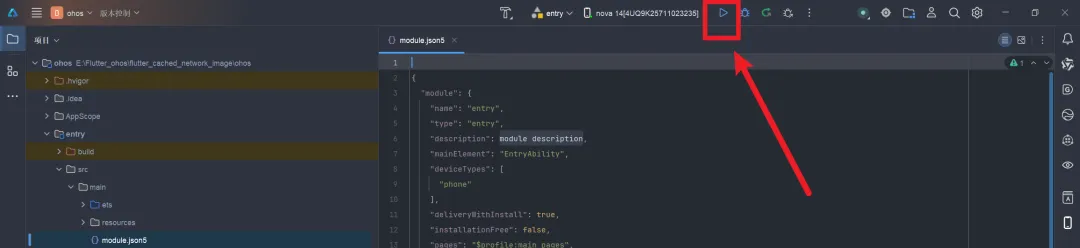 使用安装好的DevEco Studio打开新建的项目内生成的ohos包,连接调试设备进行签名处理。