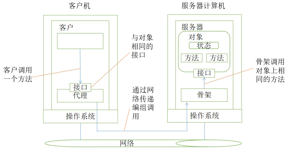 服务器端存根通常被称为骨架(skeleton),因为它提供了明确的方式,允许服务器中间件来访问用户定义的对象。实际上,它通常以特定于语言的类的形式包含不完整的代码,需要开发人员来进一步对其进行特殊化处理。