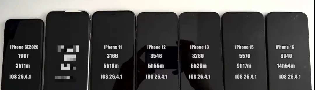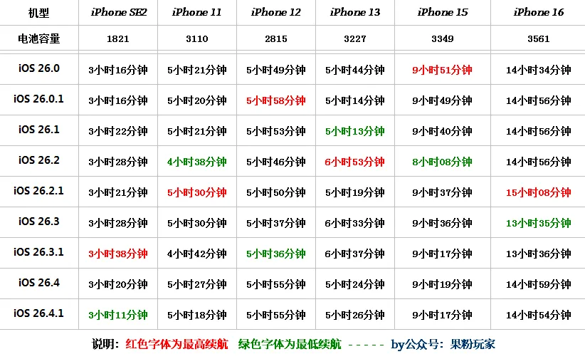 iOS 26.4.1 正式版系统电池续航结果出来了,这次没有意外,比较稳定;数据仅供参考!
