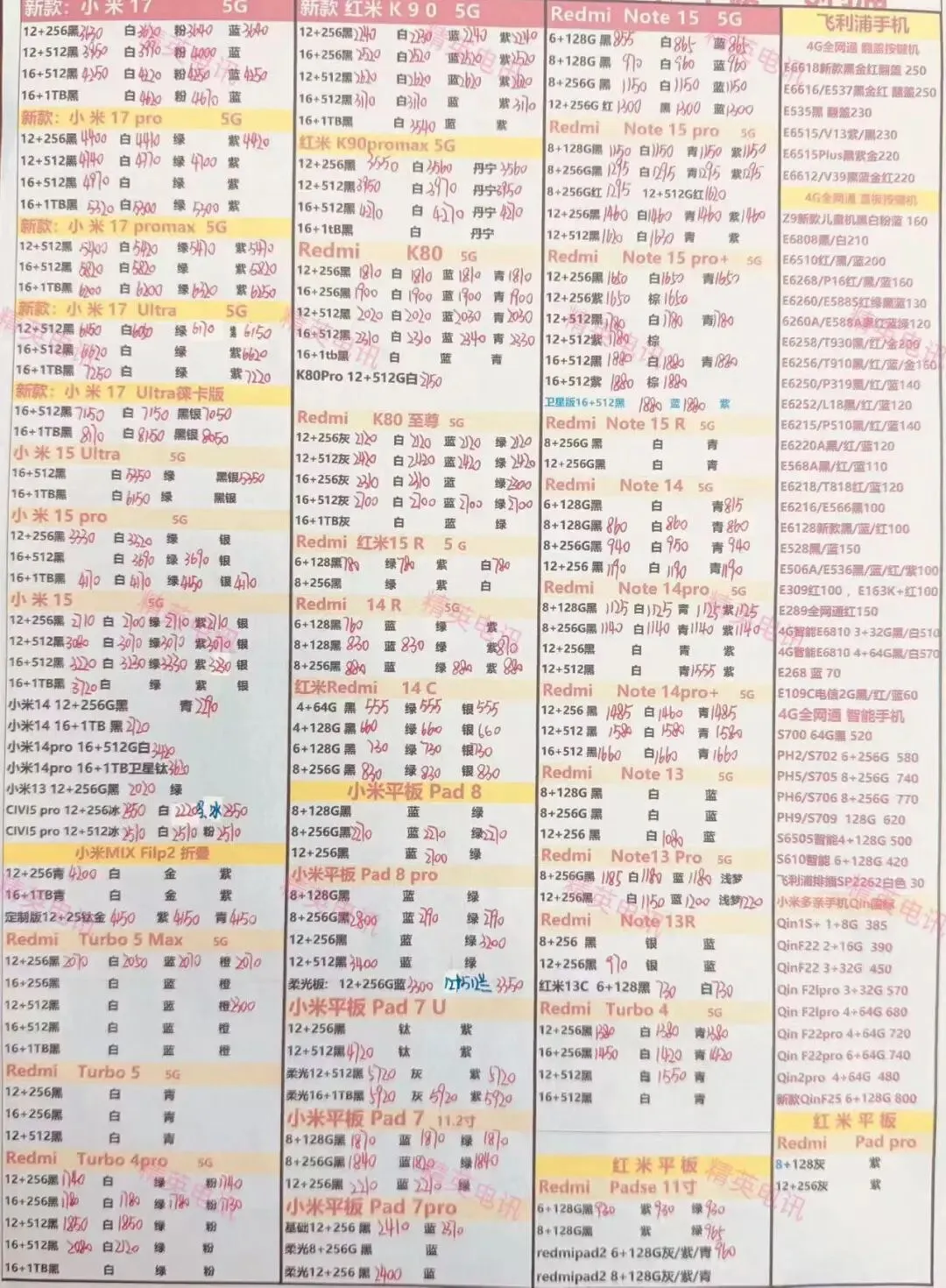 以下报价都是深圳华强北手机批发市场当天的最新批发价格(不含税),报价是我们的批发底价,零售拿货价格需加20~100元不等,京东包邮(量大价格可谈)