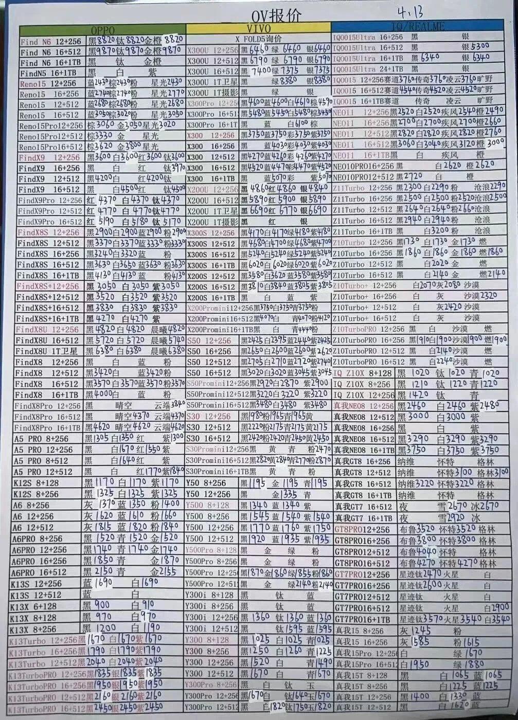 【2026年4月13日报价】深圳全新安卓手机、平板等产品批发报价