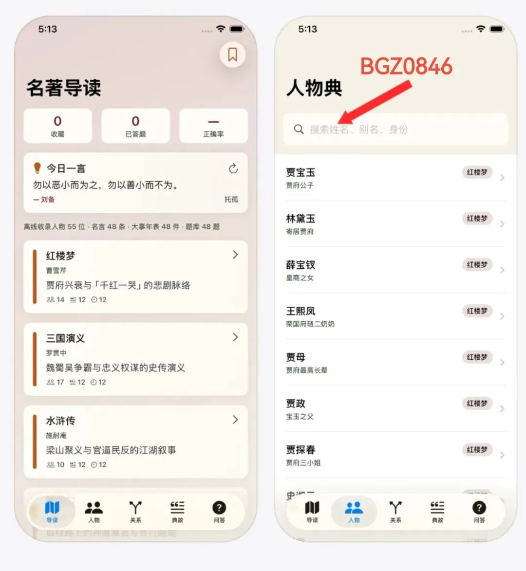 老版工具终于回归,如需从速!软件支持iOS/iPad双端,为限时开放应用,时效性很强,随时可能下架,手慢无!按作品筛选后,在「关系脉络」列表中点击一条关系的任一端姓名,即可进入人物小传;返回后再以该人物为中心查看相关关系边,题库卡片与导读、人物卡共用同一部作品标签,形成记忆锚点。