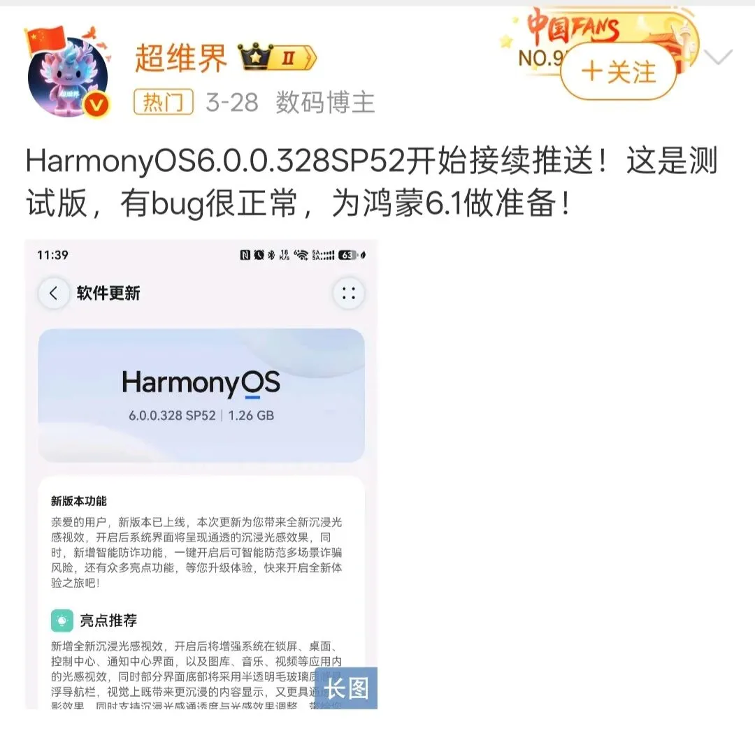 就在近日,数码博主爆料,鸿蒙OS6.1系统即将来袭,并且搭载全新升级的光感UI,华为Pura90系列很可能成为首发机型,这也引起了广大消费者和科技爱好者的关注。